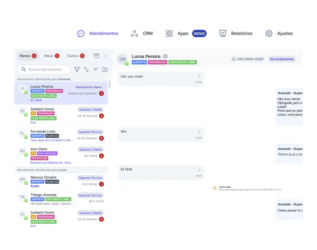 Não, aqui, tudo acontece em um só lugar: você atende, qualifica, converte e automatiza dentro da mesma plataforma. Chega de alternar entre ferramentas diferentes para cada parte do processo.